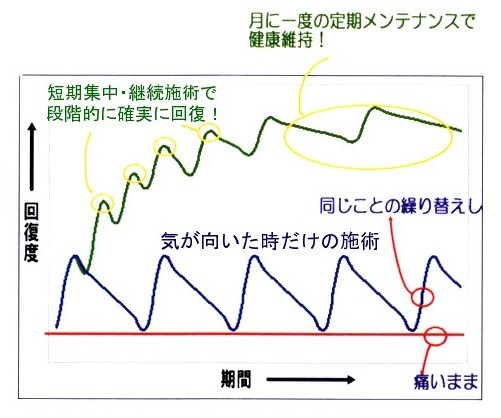 学習させ続けることで回復度も高まります。気が向いたときだけの施術では
