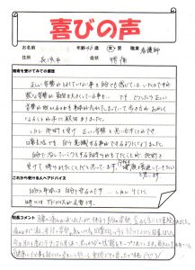 腕のシビレ 姿勢の悪さ◆ 施術者コメント ◆